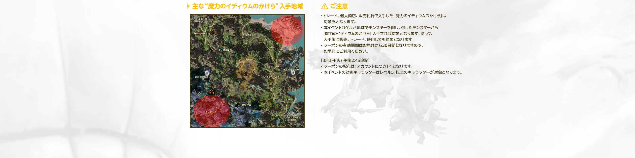 イベント期間中、ゲルハ地域でモンスターを倒して「魔力のイディウムのかけら」を入手して豪華アイテムをGETしよう!