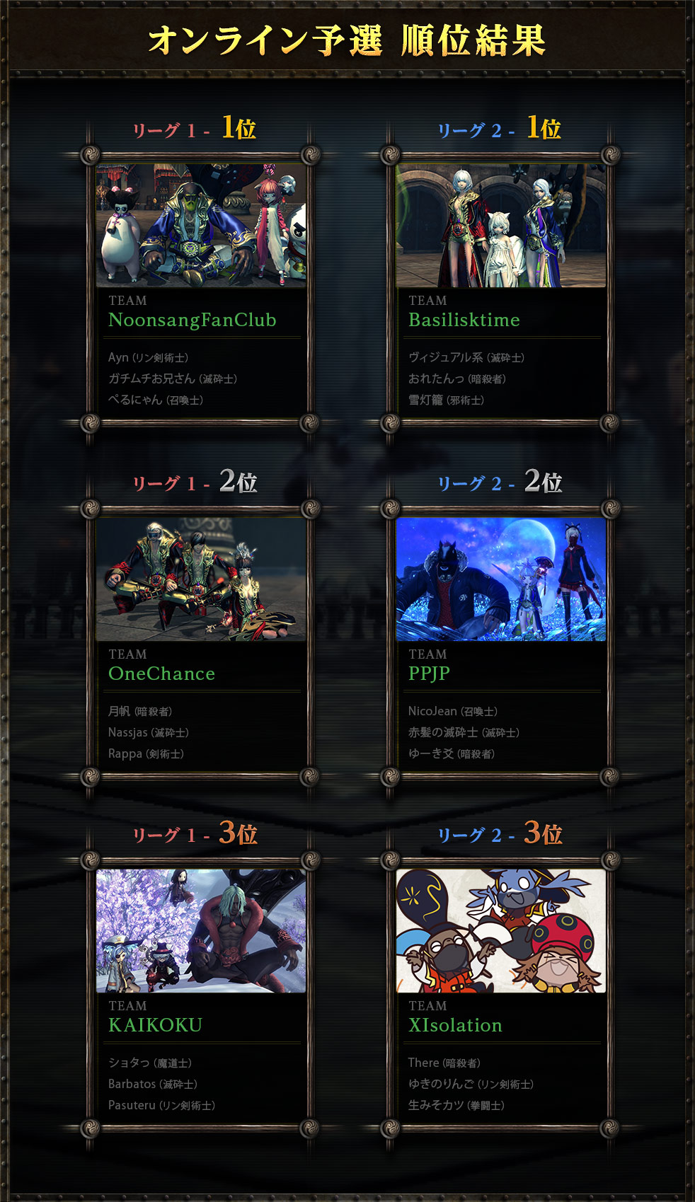 オンラインでの比武対練機能を用いて、 行われます。 上位6チームが参加し、3チームずつ リーグを2つに分け、フルリーグによる Mix&Match形式での戦い。 詳細は別ページをご参照ください