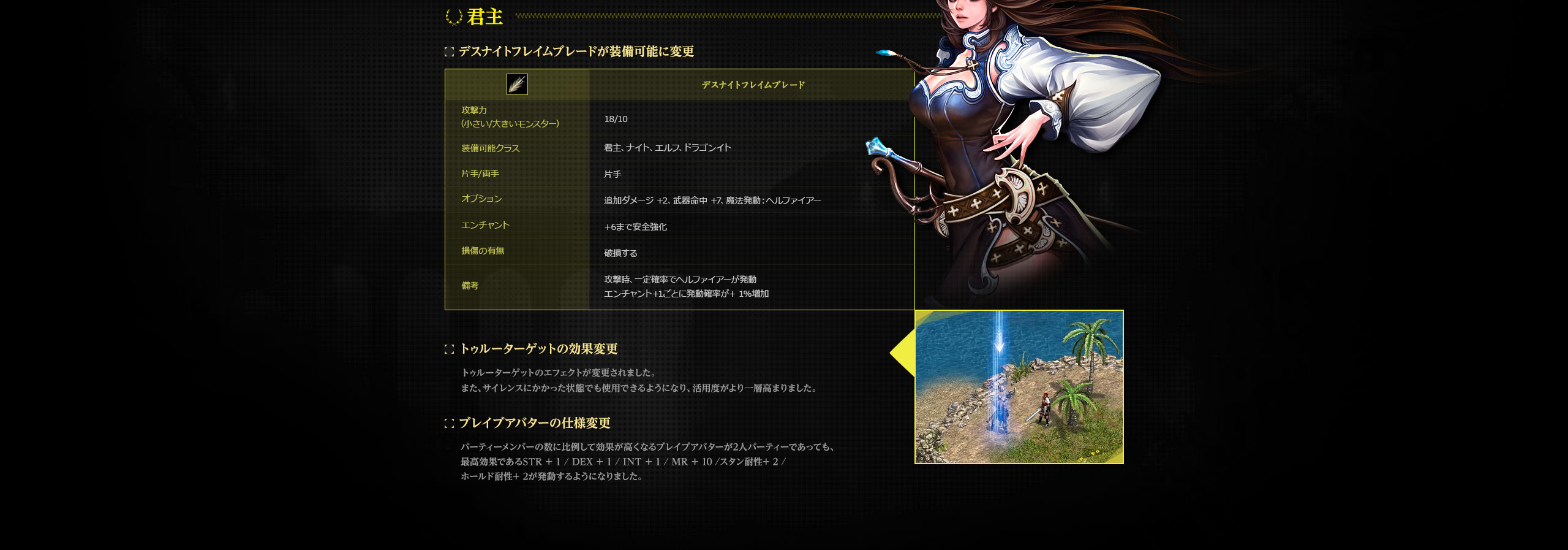 デスナイトフレイムブレードが装備可能に変更