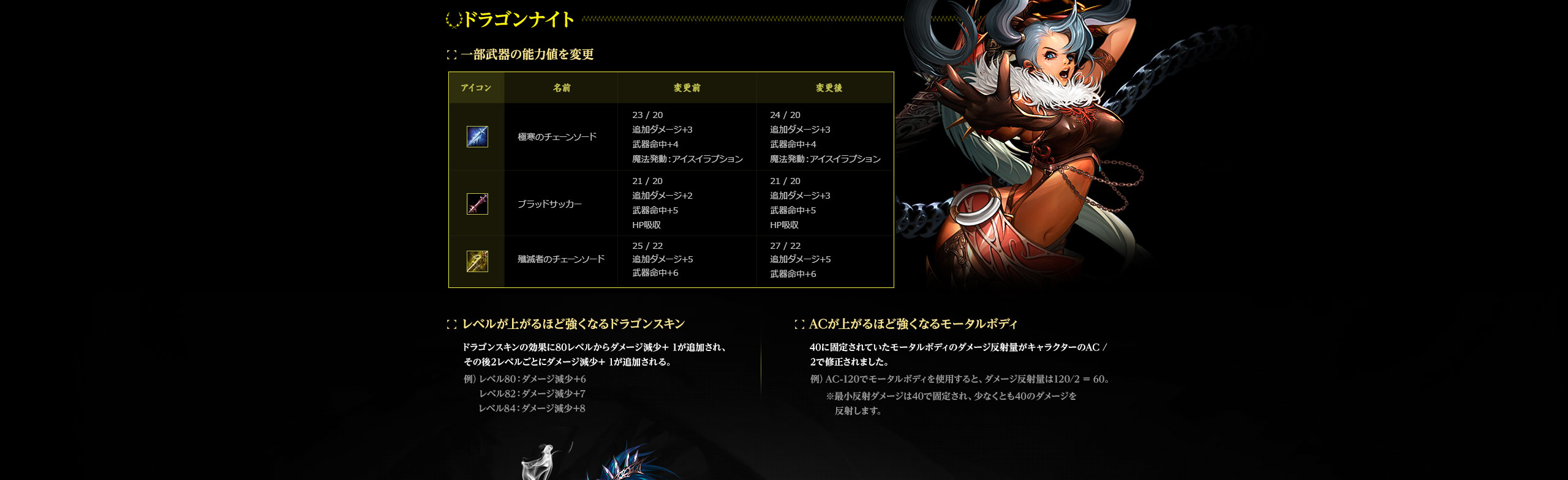 ドラゴンスキンの効果に80レベルからダメージ減少+ 1が追加され、その後2レベルごとにダメージ減少+ 1が追加される。
