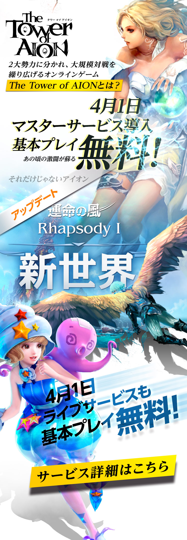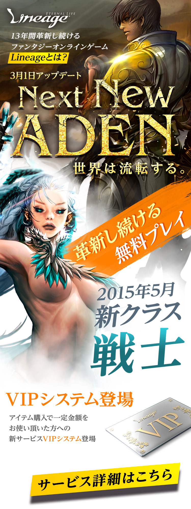 大型アップデート「Next New ADEN」導入!基本プレイ無料!5月には新クラス「戦士」導入。